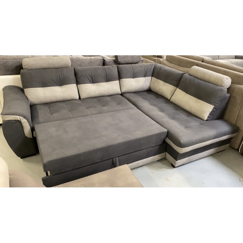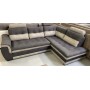 Canapé d'angle à gauche convertible en lit coffre sous la méridienne. 2 têtières (86 à 102 cm). Dimension couchage: 182x123 cm